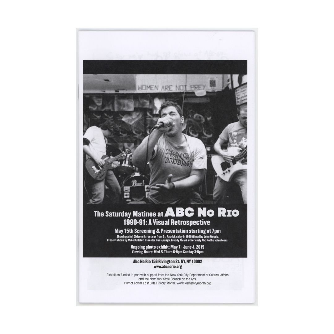"The Saturday Matinee at ABC No Rio, 1990-91: A Visual Retrospective" with presentations by Mike Bullshit, Esneider Huasipungo, Freddy Alva & other early ABC No Rio volunteers